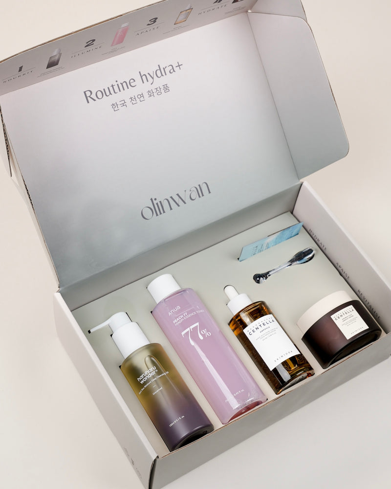 At OLINWAN, we have combined the best of K-Beauty in ready-to-use kits. Each routine combines natural ingredients – fermented black rice, Centella from Madagascar, peach extracts… carefully selected to act in synergy.